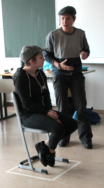 Am 6.12.2017 fand dann die erste LTTA-Stunde mit Daniela Scheuren statt. Mit spielerischen und schauspielerischen Übungen wurde uns die Ballade von Fontane, die sich genau mit diesem Eisenbahnunglück beschäftigt, verständlich nahe gebracht. Wir machten Übungen, bei denen wir verschiedene Emotionen mithilfe unseres Körpers darstellen sollten, erstellten Standbilder zum Thema und verkleideten uns, um besser in die verschiedenen Rollen reinschlüpfen zu können. Nachdem uns Daniela die Ballade frei und aus verschiedenen Perspektiven vorgetragen hatte, sollten wir Worte oder Satzteile, die wir uns bei dem Vortag gemerkt hatten aufschreiben. Aus diesen Bruchstücken rekonstruierten wir die Reihenfolge der Handlung, indem wir uns mit unseren Blättern an einer Linie aufstellten. Anschließend übten wir mehrmals das betonte und theatralische Vortragen der Bruchteile.