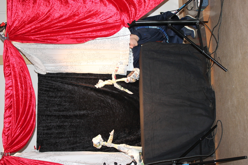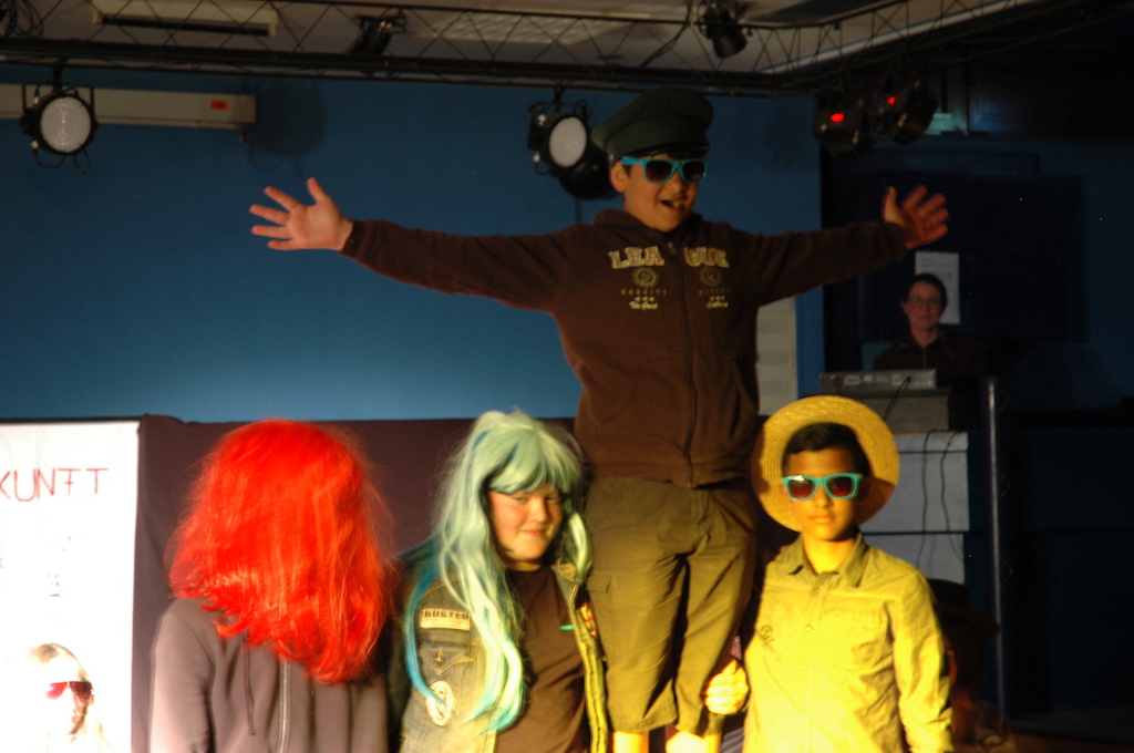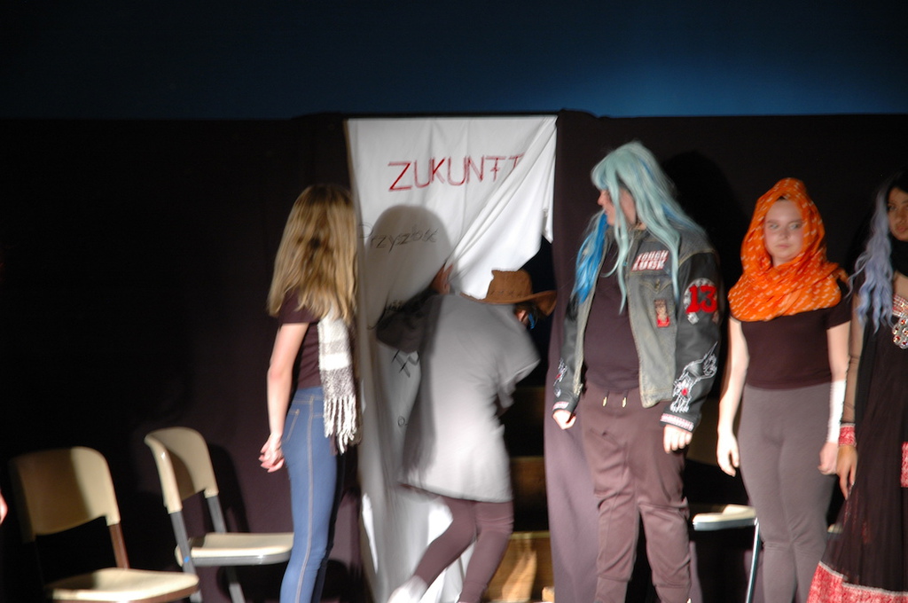 Als uns das bewusst war, hat Patrick uns angeleitet, Papierpuppen zu bauen, die unsere eignen Ängste darstellen sollten. Sie durften so abstoßend und fies aussehen, wie unsere Ängste sich in uns anfühlen. Die Puppen wurden dann durch kleine Übungen zum „Leben erweckt“ so dass wir im Anschluss mit ihnen kurze Szenen auf der Bühne spielen konnten. Darin haben sich die Ängste zum Beispiel mit ihren fiesen Eigenschaften vorgestellt und sich mit anderen Figuren unterhalten. Ziel war es, dass wir uns das, was uns abhält davor, mutig uns ein Ziel zu setzten, bewusst zu machen und letztendlich dadurch, dass wir das wissen, die Ängste unter Kontrolle bringen.