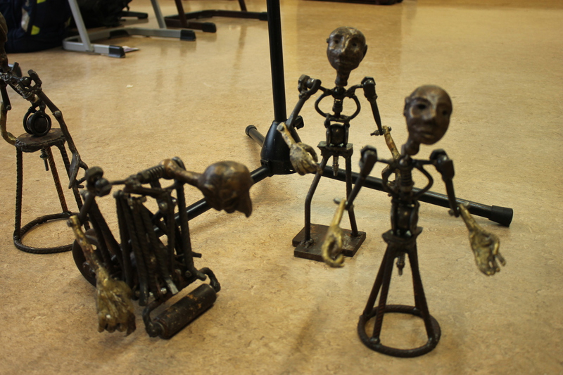 Patrick Lumma hat uns zunächst einmal etwas über seinen eigenen Lebensweg erzählt. Der Beruf des „Puppenspielers“ den er in Berlin studiert hat, ist ungewöhnlich und wie es zu diesem Wunsch kam, wollten wir alle wissen. Beeindruckt waren wir von seinen selbstgebauten Figuren und Marionetten, von denen er eine Auswahl ins Klassenzimmer mitgebracht hatte und die wir anfassen und ausprobieren durften. Welchen Weg jemand in seinem Leben geht, welche Ziele er sich steckt, hat viel damit zu tun, was man sich selbst zutraut aber auch wovor man zurückschreckt und Angst hat.